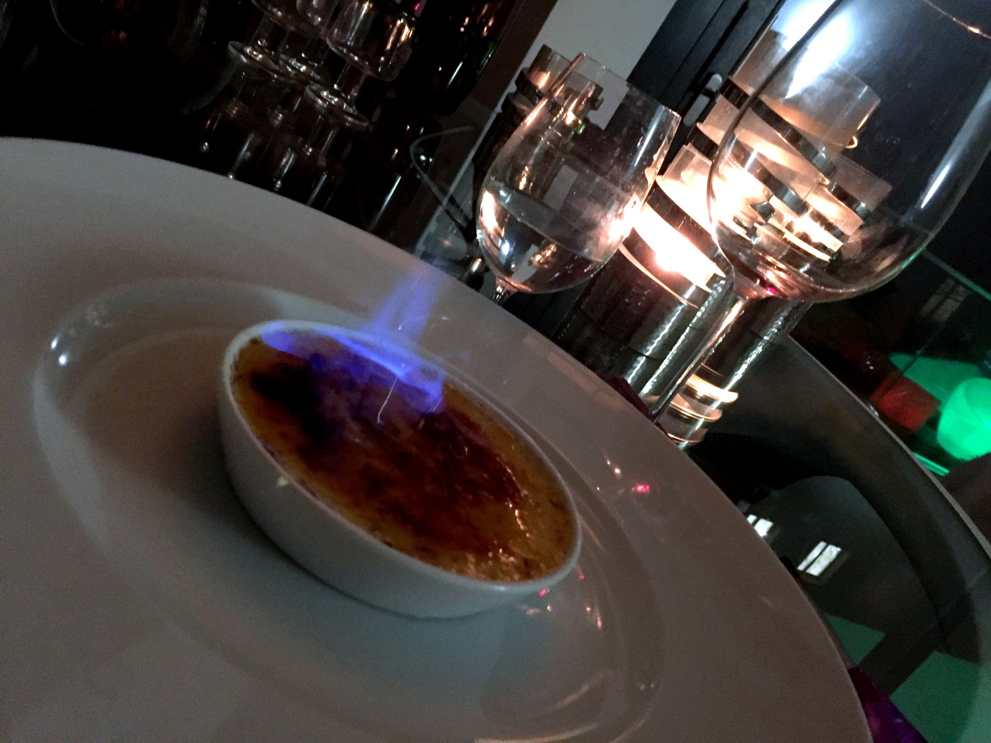 - Before serving, sprinkle the Crème Brûlée with the remaining lavender sugar and caramelize under a blow-torch. And finally, if you cannot resist the temptation to play with fire, but totally optional: At the table, pour half a shot of Grand Marnier over each dish of Crème Brûlée and flambé it immediately.