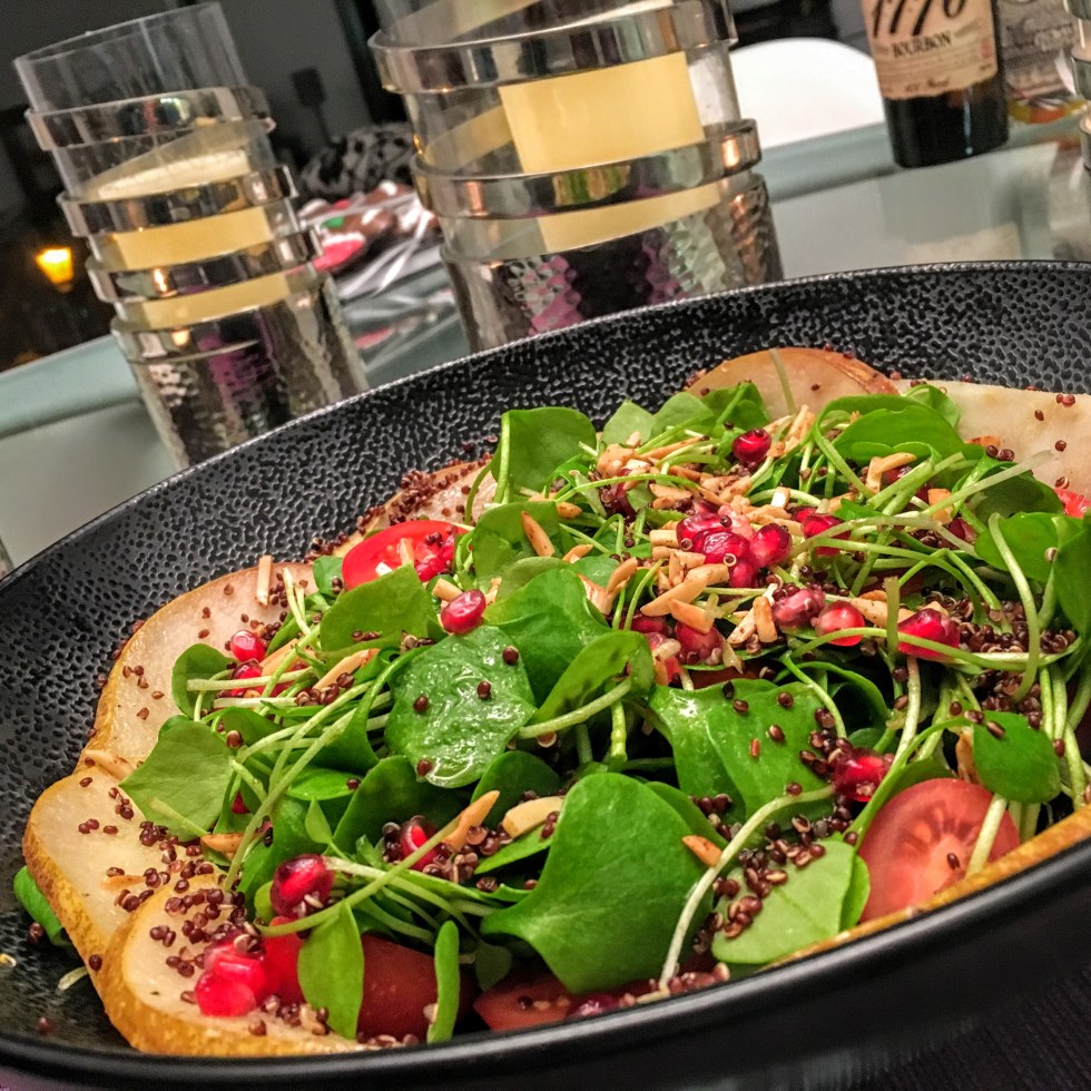 Christmas Dinner: Porcini Soup – Braised Iberian Duroc Pork Cheeks with Spaetzle & Brussel Sprouts – Tarte Tatin