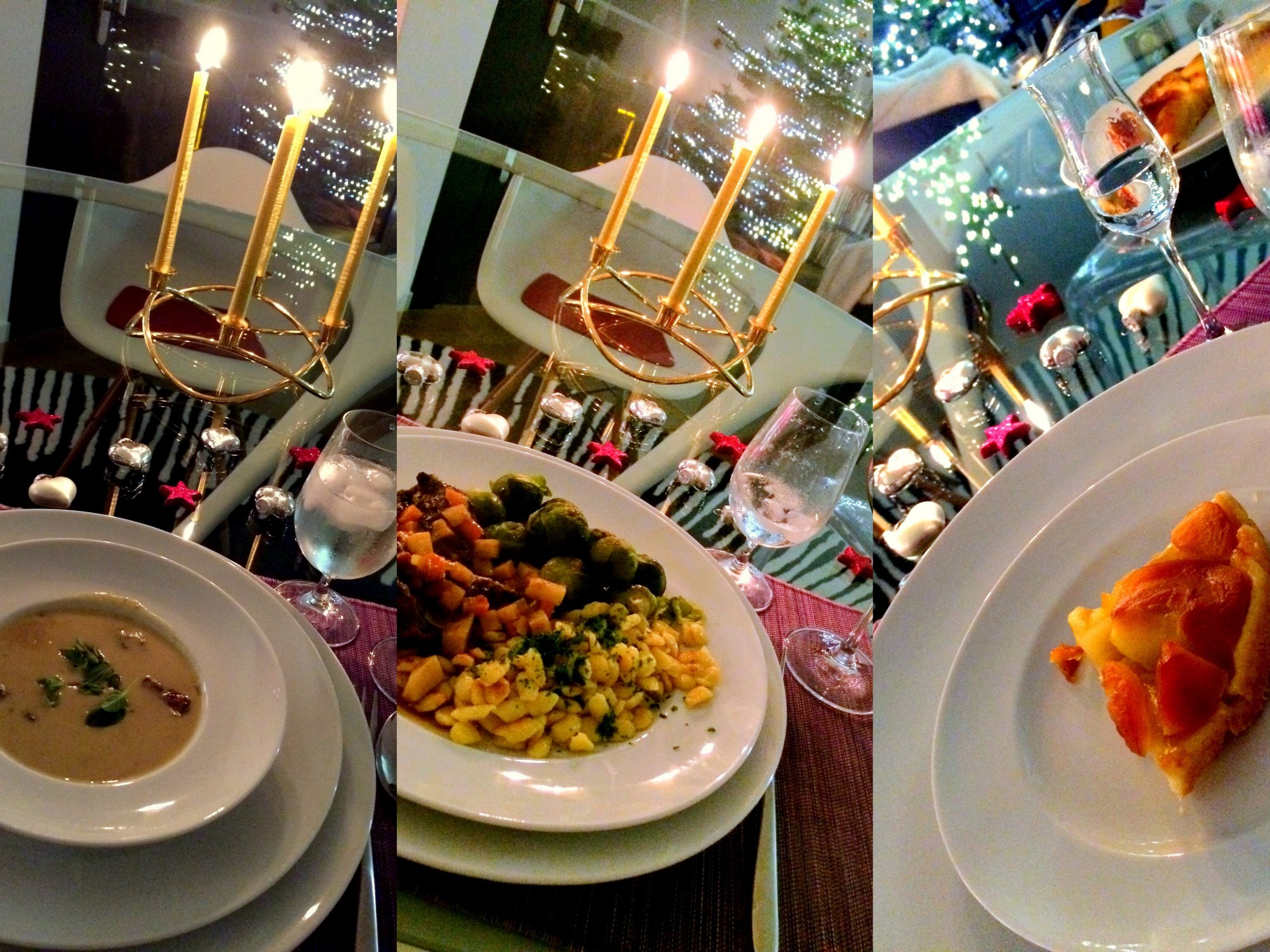 If you should still be musing over what to cook for Christmas, here is my suggestion for a Christmas dinner. It is my last year’s Christmas Eve dinner and I truly enjoyed making it (and, of course, eating it). Its preparation will certainly keep you busy for a couple of hours but if you do not wish to spend too much time in the kitchen on Christmas day, much of it can also be prepared in advance. I suggest to begin with a light amuse-bouche – e.g. a light fish terrine which can be purchased from a good deli section (yes, some „cheating“ should be allowed on Christmas Eve) or a small fresh salad of young and tasty leaves. And then work yourself through the individual courses as follows (for the recipes, follow the links):