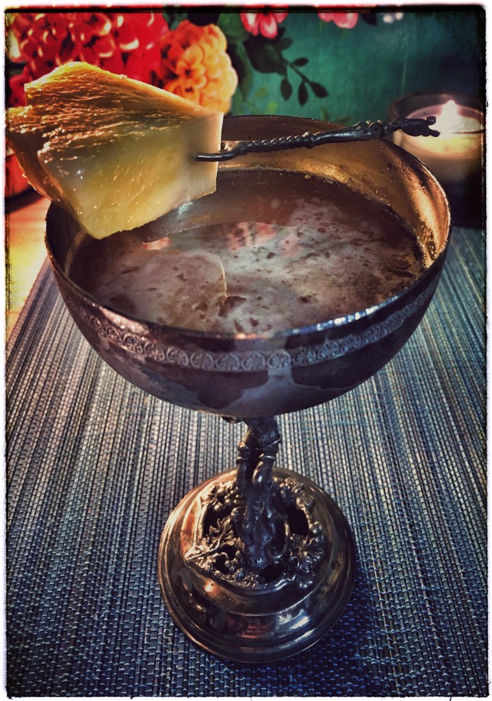 - Serve with a piece of pineapple for decoration. (A fresh piece will look a lot nicer that the one you might be able to retrieve from the shaker.)