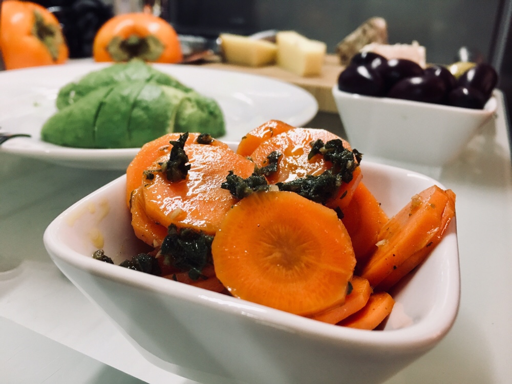 I somehow often end up with leftover carrots in my kitchen so I came up with this dish to prevent them from gradually shriveling in my fridge before facing the inevitable. And it actually turned out to end up as one of those dishes I honestly cannot have too often. It makes up for a lovely tapas dish, goes well with all kinds of different tapas, cheese and cold cuts.