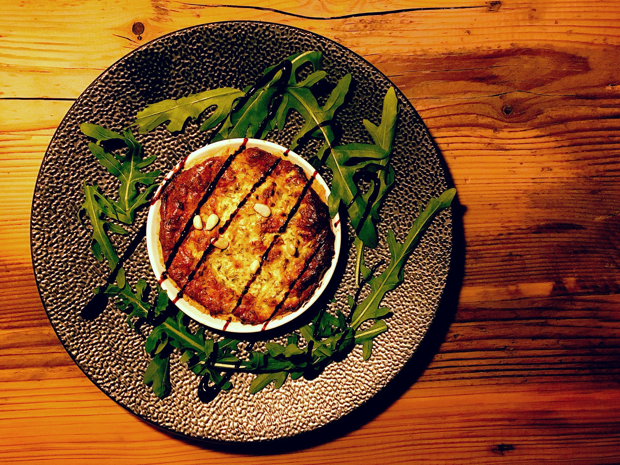 - Serve decorate with some rocket leaves and sprinkle with the roasted pine nuts.