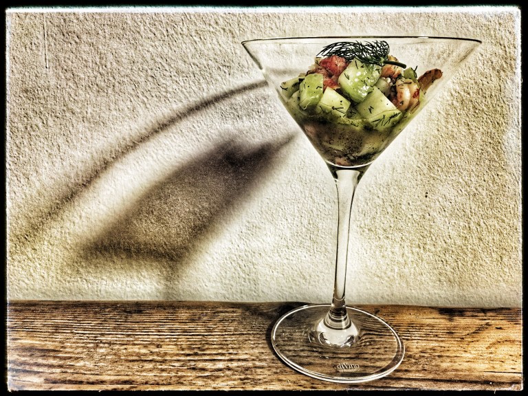 If I were asked what to put on the menu for an 80s-themed dinner, I would not have to think hard to come to the conclusion that a shrimp cocktail just has to be there. Seen through the lens of my childhood self, the shrimp cocktail – authentically served in a martini glass – undoubtedly represents the convergence point of all things that could be „fine“ in „dining“.