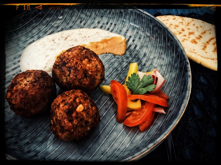 Falafel is probably my favorite street food. When I was celebrating my last round birthday, I actually placed an order with my favorite falafel shop in Berlin who prepared a beautiful large platter for me with lots of oriental salads, fresh orange slices, dips, and – of course – falafel. – I was absolutely thrilled when it got delivered, but guess what: As the guests started pouring in, I got so busy to say hallo and chat with the guest that when I turned to the dinner table the next time, there wasn’t but one tiny falafel ball left… Well, I certainly enjoyed that one.