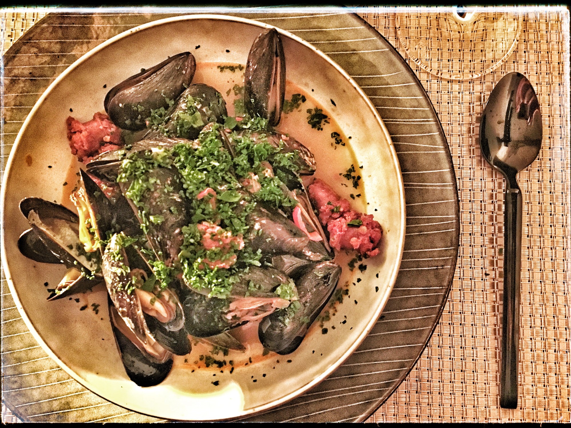 October has arrived and the mussel season is in full swing! The fleshy molluscs may now be found on the fishmongers‘ counters wherever you look. – Here’s a lovely recipe that combines this seafood treat with flavorful Chistorra (txistorra) sausage from the Basque Country.