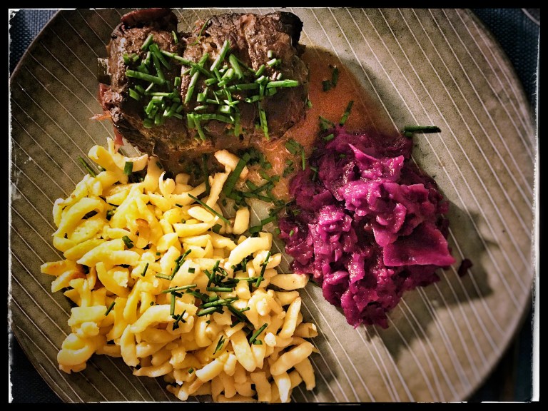 Beef roulade is an absolute classic of German cuisine. My mother used to make it frequently and I always loved it, and I guess few children of my generation do not share the same memory. I also served beef roulades several times to guests who were unfamiliar with German cuisine and they all became instant fans. No wonder – rich and flavorful, this is feel-good food, and a warming treat particularly during the winter time.