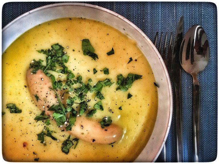 - Finally, add the sausages again, put back on the heat and let warm through (don’t boil) for a few minutes. Stir regularly to avoid that the soup burns at the bottom.