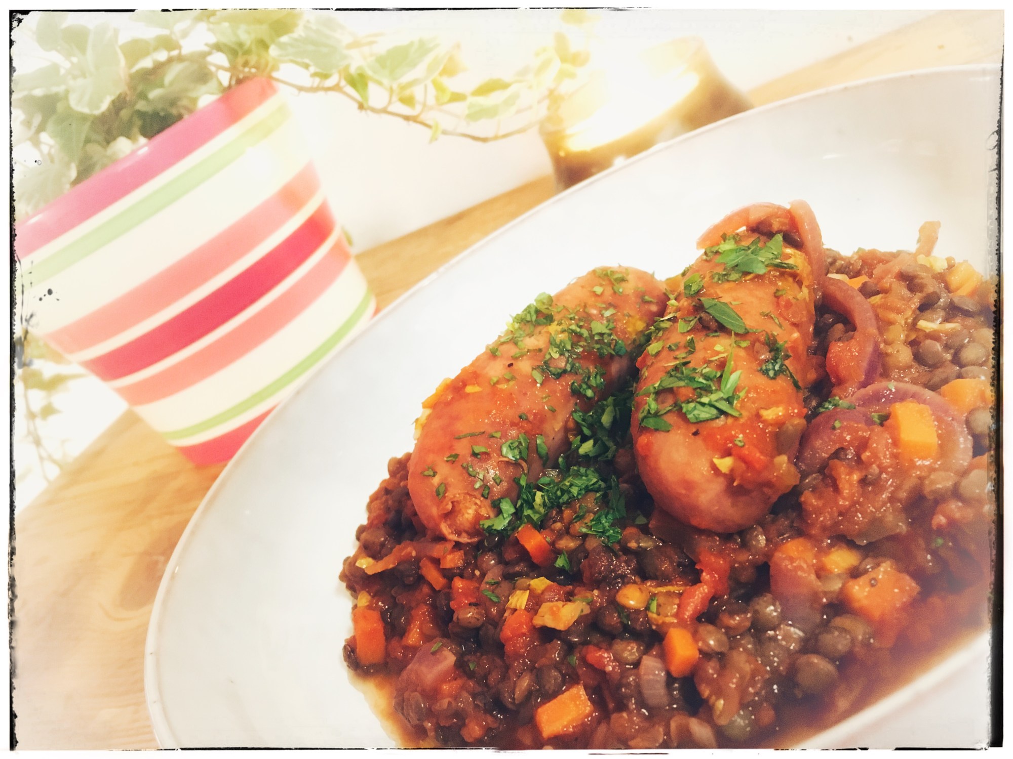 This simple and yet incredibly tasty country dish is based on a meal that Giorgio Locatelli prepared in the „Italy Unpacked“ series. In one of the episodes, he and Andrew Graham-Dixon visit Umbria and, more precisely, the heartland of where the world-famous Castelluccio lentils grow. They buy some amazingly good-looking local sausages and Giorgio transforms those and the famed local lentils into a hearty dinner feast.