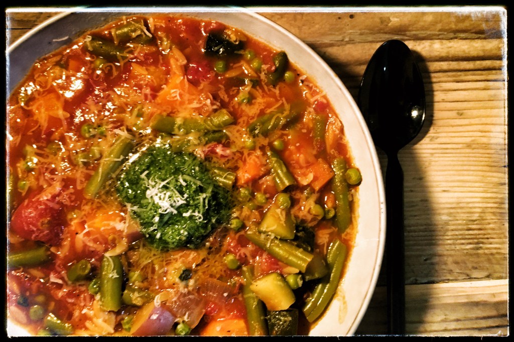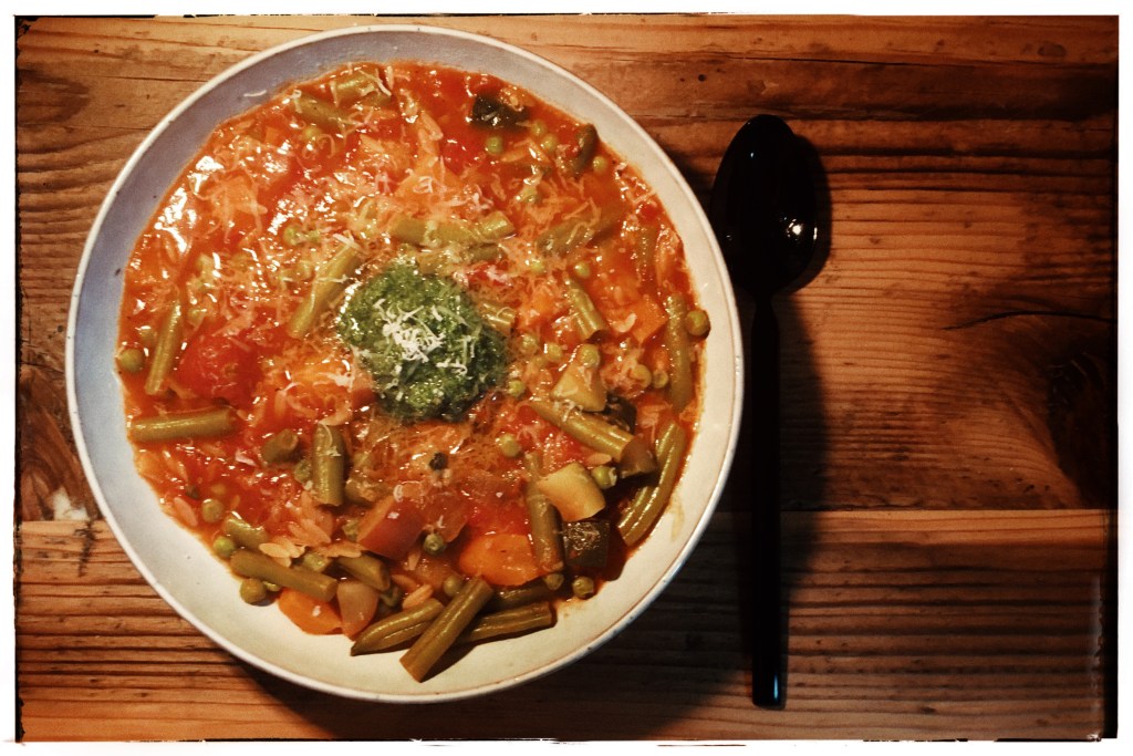 This wonderful Provençal vegetable soup is certainly nicest when the vegetables are in season but it also is a delightful winter dish – most ingredients should also be easily available in winter. The highlight of this dish is the „sauce pistou“, which you swirl in just before serving.