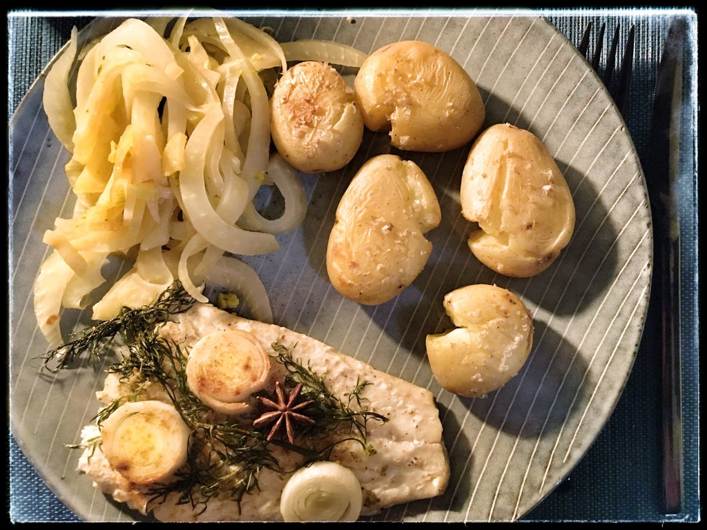 - Serve the fish immediately on the side of the potatoes and the fennel.