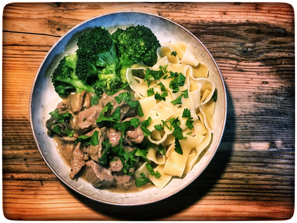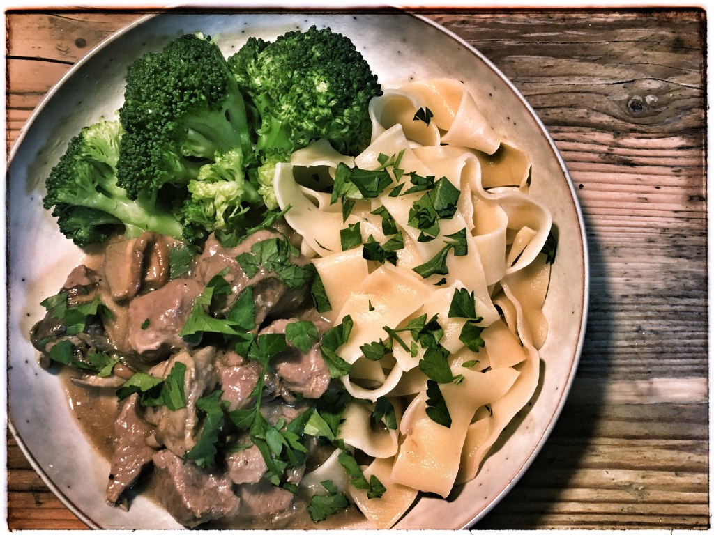 - Garnish with parsley. Serve with pappardelle, spaetzle or soft-boiled or mashed potatoes. – Enjoy!