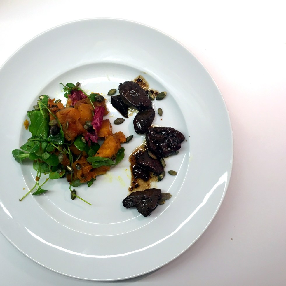 Goose Liver in Port Wine Sauce with Roasted Pumpkin Salad