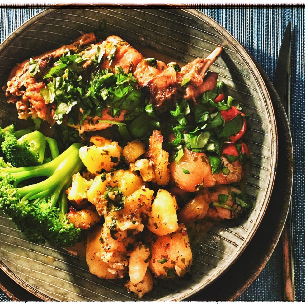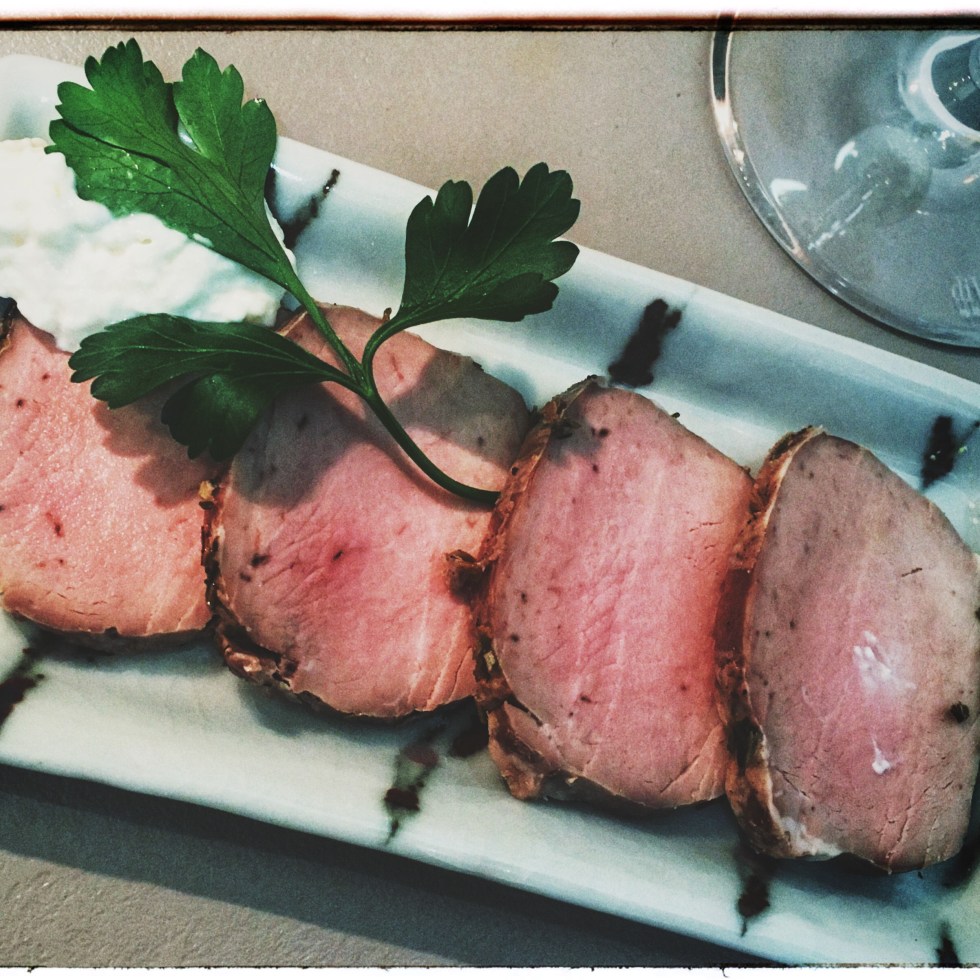 Seared Tuna on Beluga Lentils, Truffled Scallop & Argentine Red Shrimp