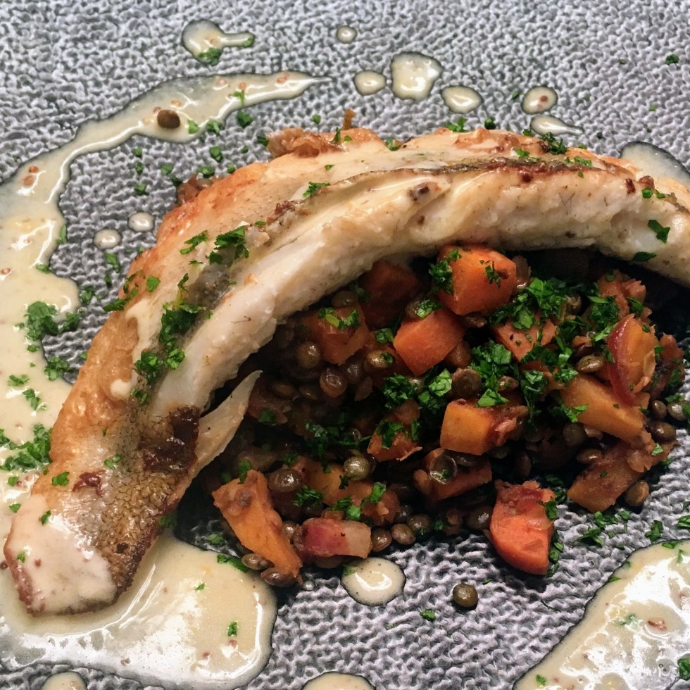 Fried Pike-Perch on Puy Lentils with Dijon Mustard Sauce