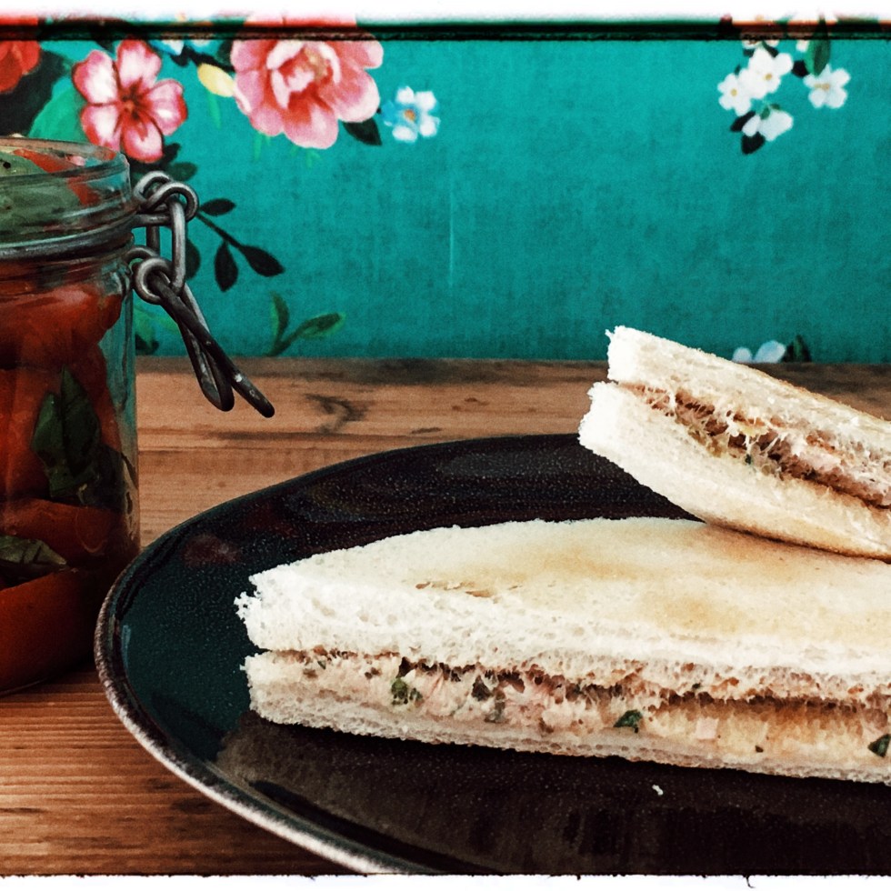 Tuna and Caper Tramezzini with Grape Tomato Salad